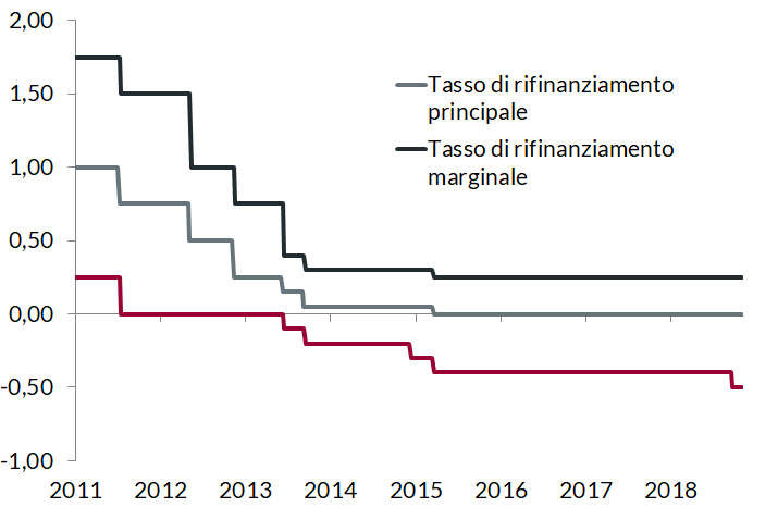 - introduzione di un sistema a due livelli per la remunerazione delle riserve bancarie, parzialmente esentate dall’applicazione di tassi negativi per salvaguardare il funzionamento del meccanismo di trasmissione della politica monetaria.