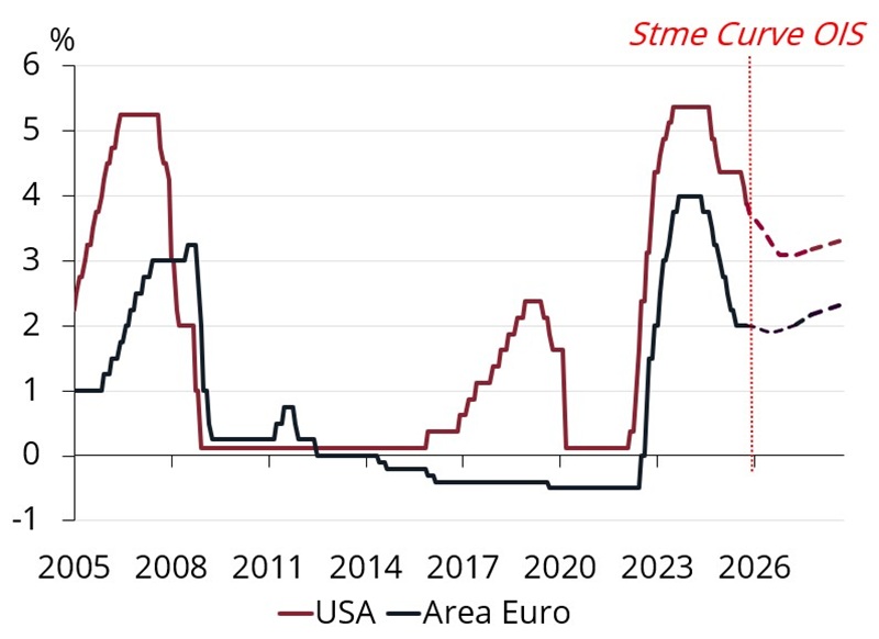 Pur prendendo atto del fatto che il timing del prossimo intervento è diventato più incerto e uno slittamento a gennaio non si può escludere, restiamo dell’avviso che i tagli consegnati entro settembre 2026 saranno quattro, con un livello di atterraggio per il target sui Fed Funds di 2,75%-3,00%.